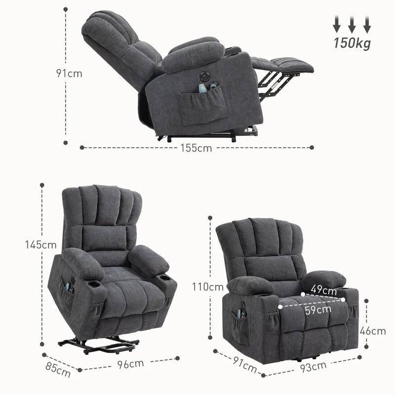 Elektrické polohovatelné masážní křeslo | tmavě šedé