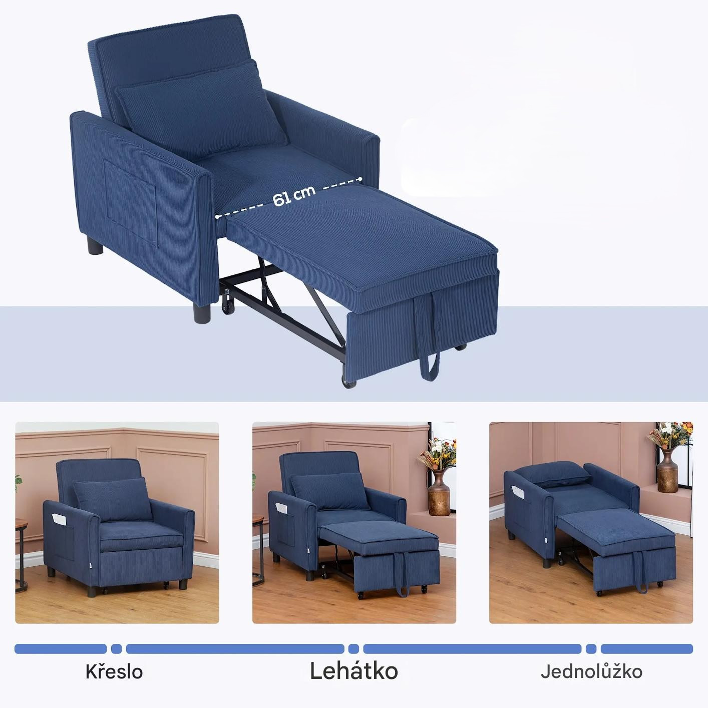 - Bez námahy se přemění na křeslo, lehátko nebo rozkládací pohovku.