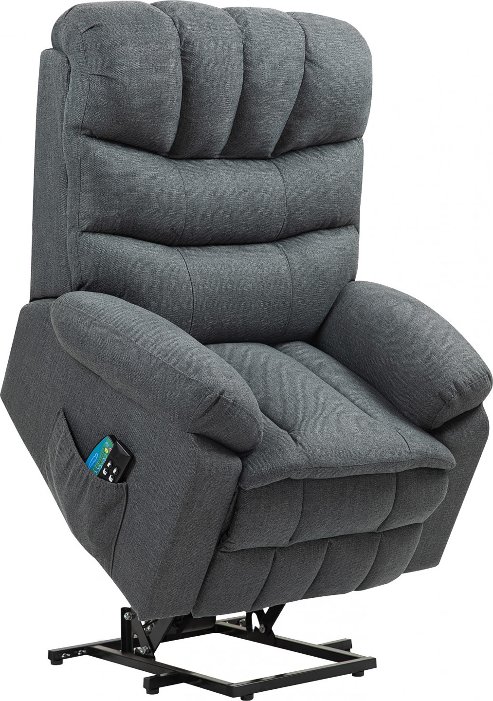 Vychutnejte si pohodlí elektrického televizního křesla se stojánkem: tři motory individuálně nastavují opěrku hlavy, opěradla a nohou (až 170°), prostorná sedací plocha 58 x 58 cm pro individuální pohodlí. Elektrická stojící pomůcka poskytuje oporu až do úhlu 45°, ideální pro seniory a osoby s omezenou pohyblivostí. Relaxaci zajišťuje osm masážních bodů a bederní vyhřívání v prodyšné látce, vše zabaleno v prodyšné lněné tkanině.