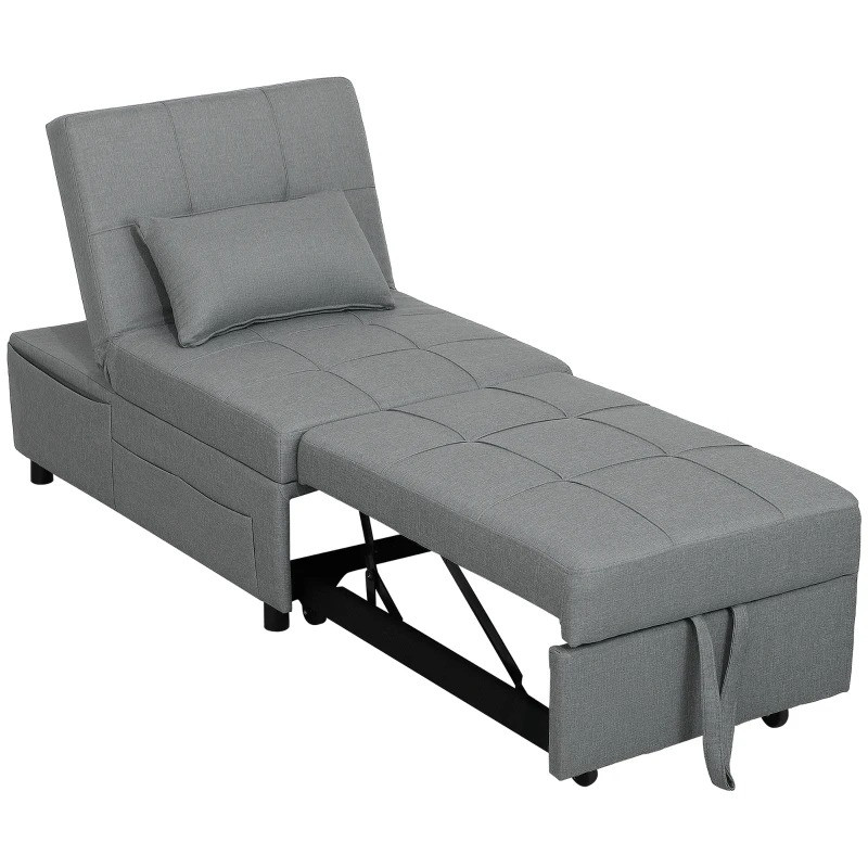 Ráno na balkoně, při čtení na slunci, nebo večer v obývacím pokoji při jemném pohupování ke spánku - toto křeslo se přizpůsobí vašim potřebám. Díky třem nastavitelným polohám opěradla nabízí optimální oporu a pohodlí. Měkká pěna a elegantní potah připomínající plátno poskytují luxusní posezení, zatímco robustní dřevěný rám a praktické boční kapsy spojují funkčnost a styl. Snadno se přemisťuje a doprovází vás v každé místnosti.