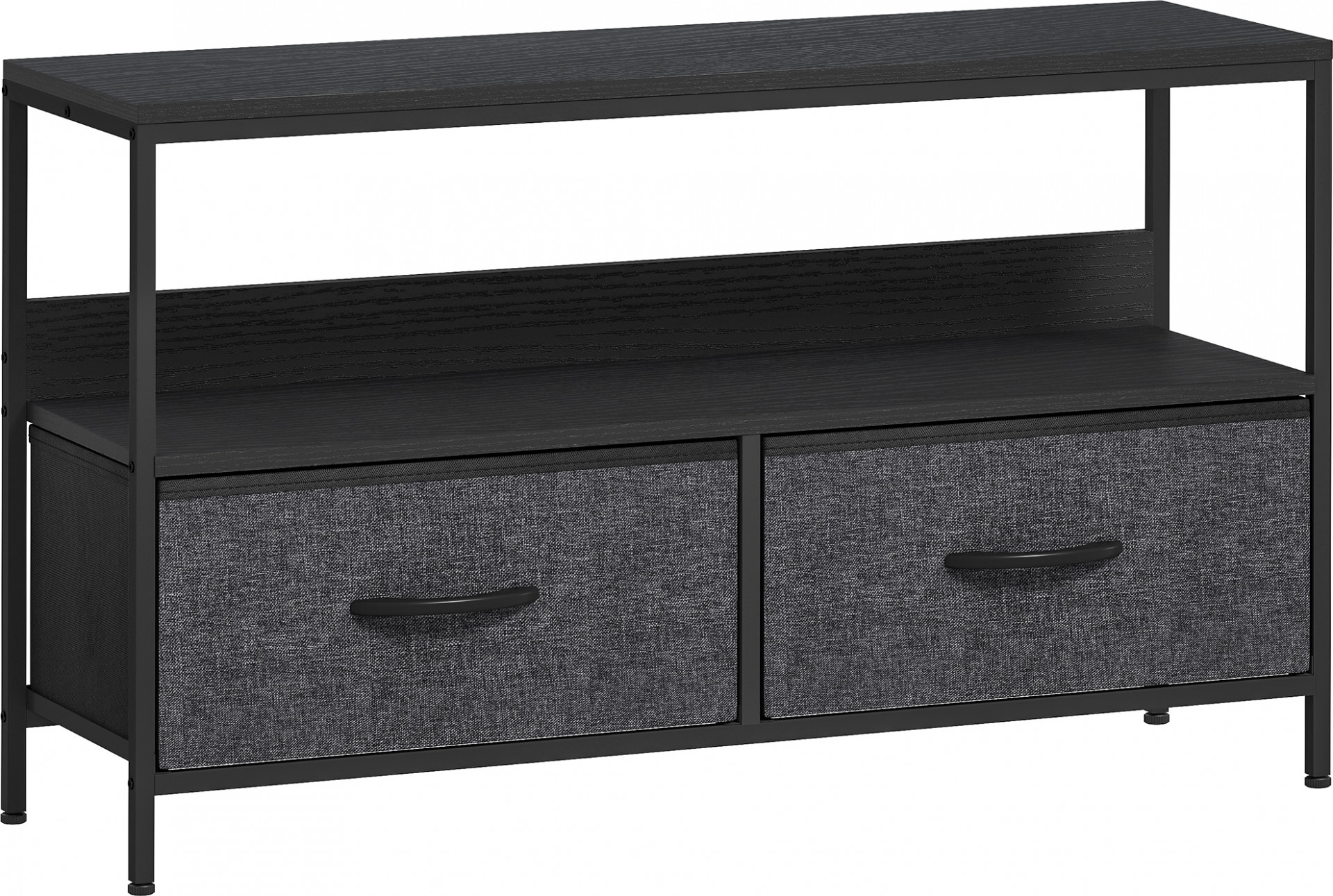 TV stolek se 2 výklopnými látkovými zásuvkami a policí 98 x 29 x 56 cm | černý
