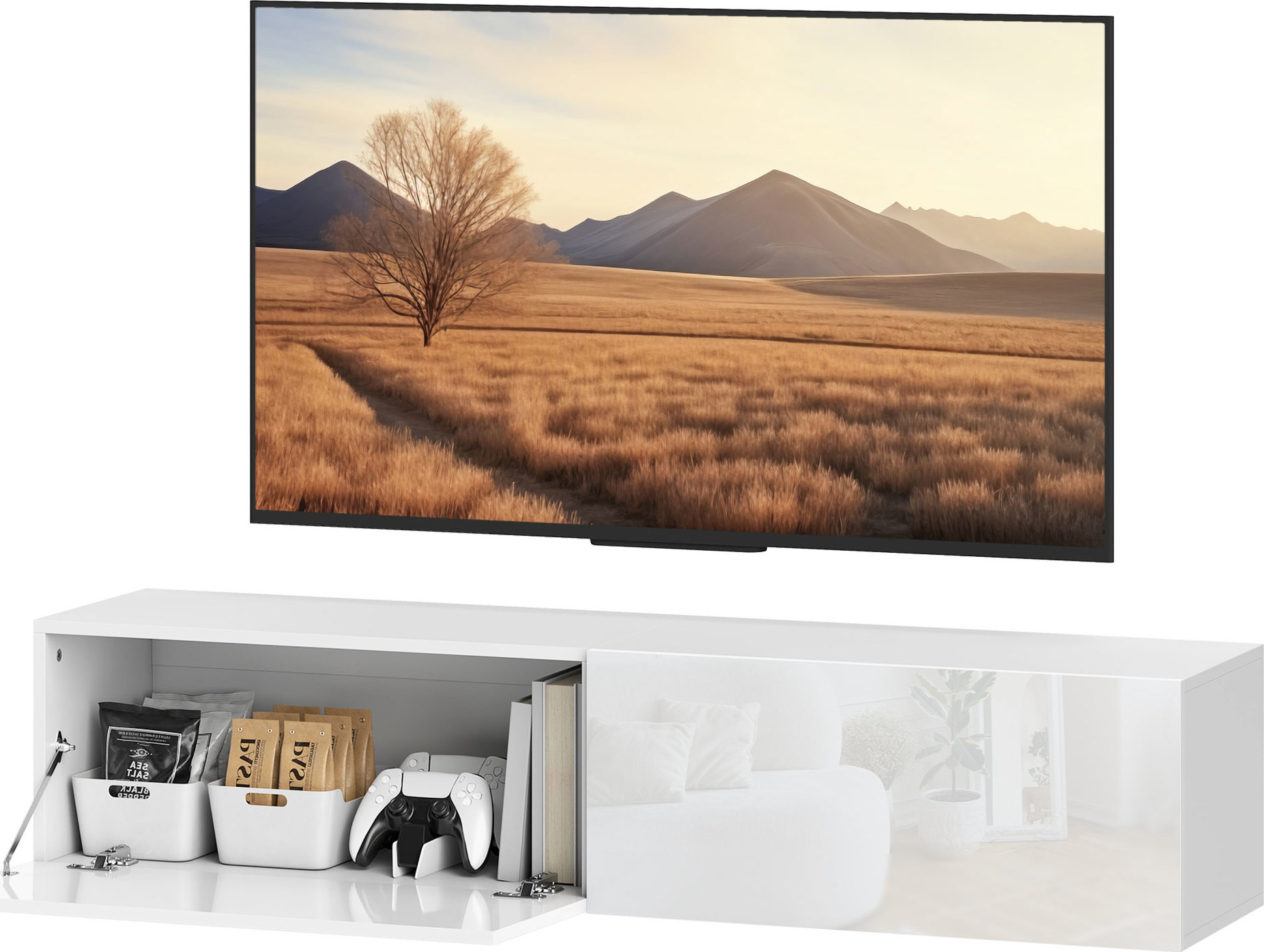 Přestavte si obývací pokoj pomocí této nástěnné skříňky na televizor. Tento stylový kus nábytku vytvoří více podlahového prostoru a zároveň umožní ukládat DVD, herní konzole, dálkové ovladače a další. Skříňka je vhodná pro 45-, 55- nebo 65palcové televizory, má velkou plochu a dvě skříňky pro vaše úložné potřeby. Dřevotřísková deska s melaminovým povrchem televizní lavice zajišťuje moderní vzhled a snadnou údržbu.