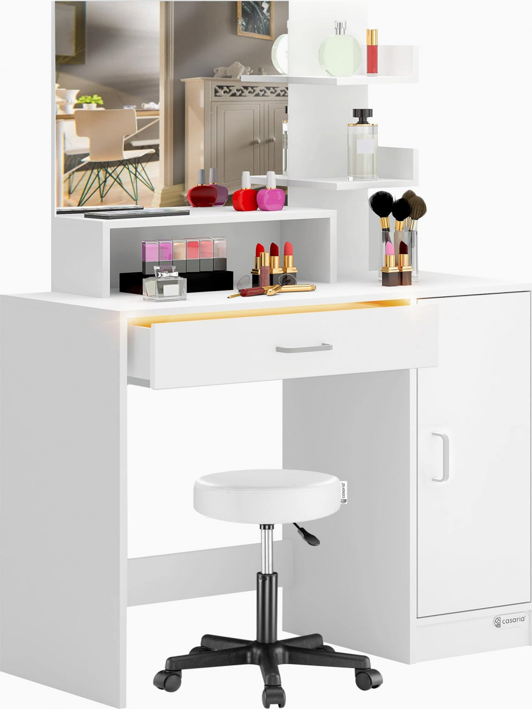 Toaletní stolek Jocelyn včetně pojízdné stoličky | bílý