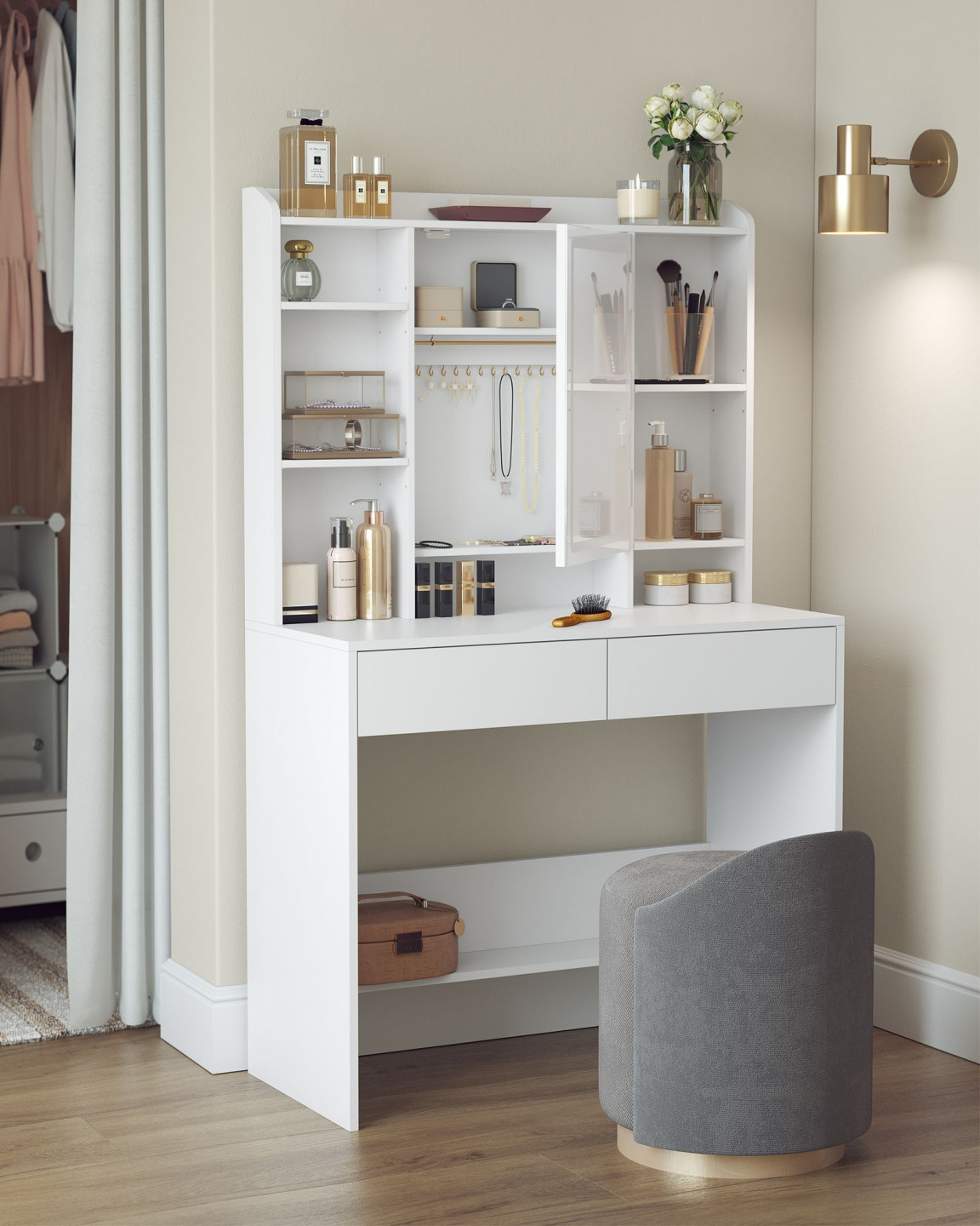 Tento kosmetický stolek je vyroben z kvalitní dřevotřísky, je stabilní a odolný. Jeho povrch je odolný proti opotřebení a snadno se čistí, takže vás bude doprovázet po mnoho let.