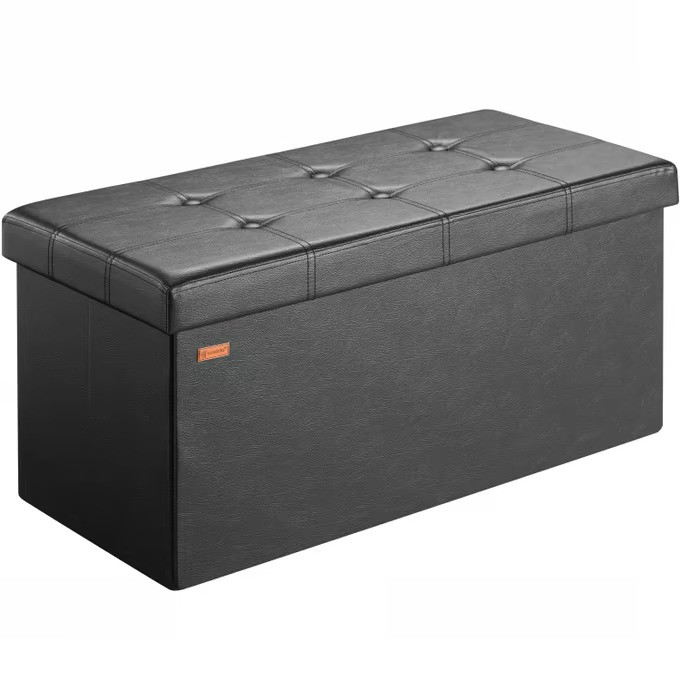 Rám komody je vyroben z pevné MDF dřevovláknité desky. Víko je extra silné a lze jej otevírat z obou stran. To umožňuje rychlé a pohodlné vyjímání nebo vkládání předmětů, aniž byste museli sundávat celé víko. Sedák je polstrovaný pěnou s vysokou hustotou pro pohodlné sezení. Vnitřní základna stoličky chrání obsah před vlhkostí. Povrch je velmi robustní a snadno se čistí .S úložným prostorem 100 litrů je úložná truhla velmi prostorným a praktickým úložným prostorem pro hračky, časopisy, CD/DVD, knihy, oblečení a mnoho dalšího.Vnitřek komody lze pohodlně rozdělit pomocí dvou příček. To také dává taburetu velmi vysokou úroveň stability .Pokud lavičku nepotřebujete, můžete ji sklopit do výšky 7 cm, abyste ušetřili místo, a snadno ji uložit pod postel nebo vedle skříně.