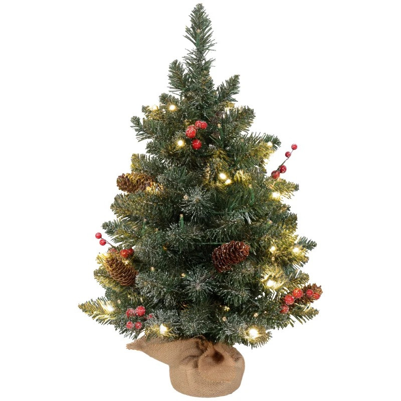 Umělý vánoční stromeček 60 cm s LED osvětlením | zeleno-bílý
