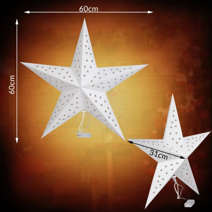Vánoční hvězdy vytvářejí během vánočního období krásnou a okouzlující atmosféru. Papírové LED hvězdy na baterie lze zavěsit kamkoli (např. do okna nebo na dveře), protože nevyžadují elektrickou zásuvku.