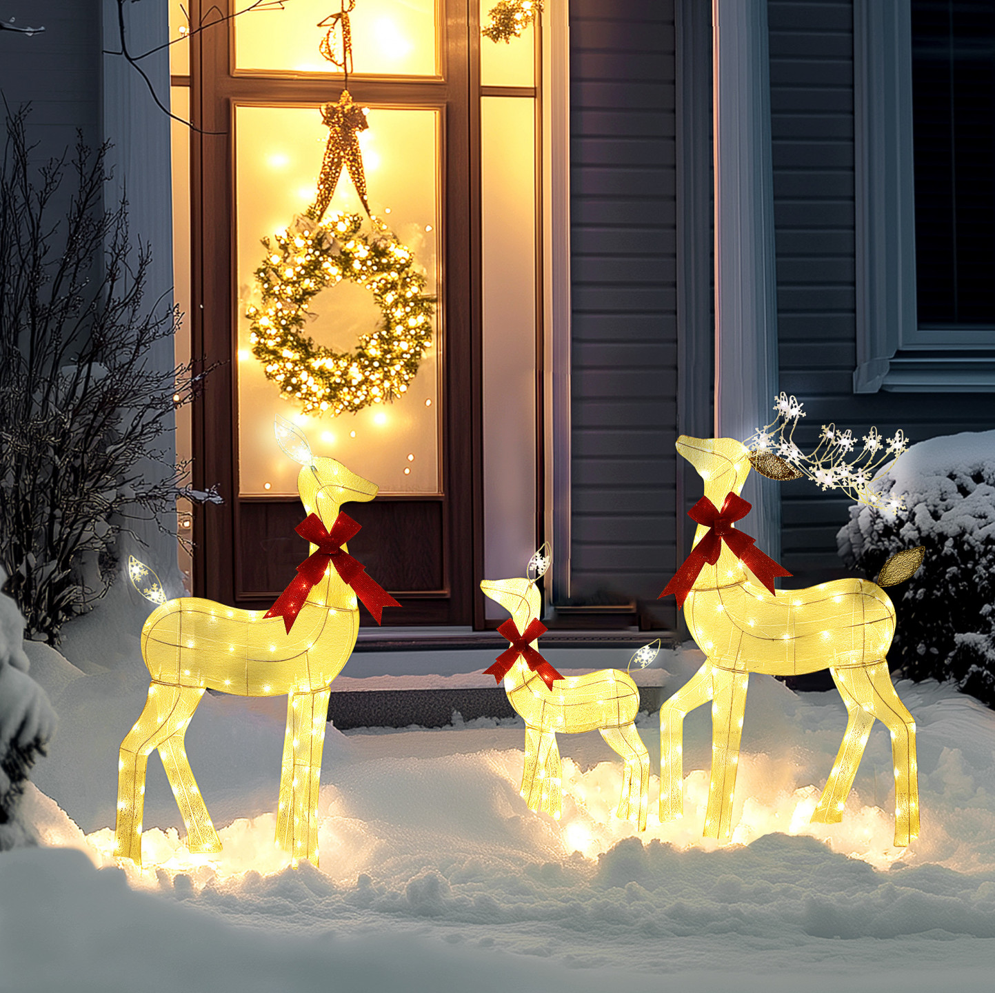 Vánoční dekorace 3dílná – Sobí rodina s LED osvětlením