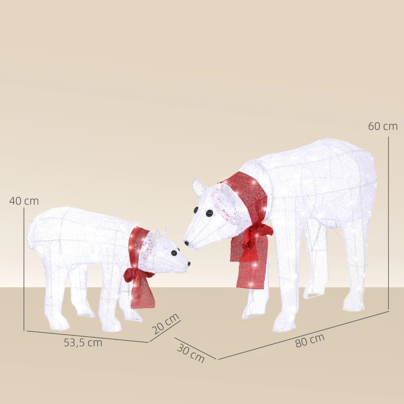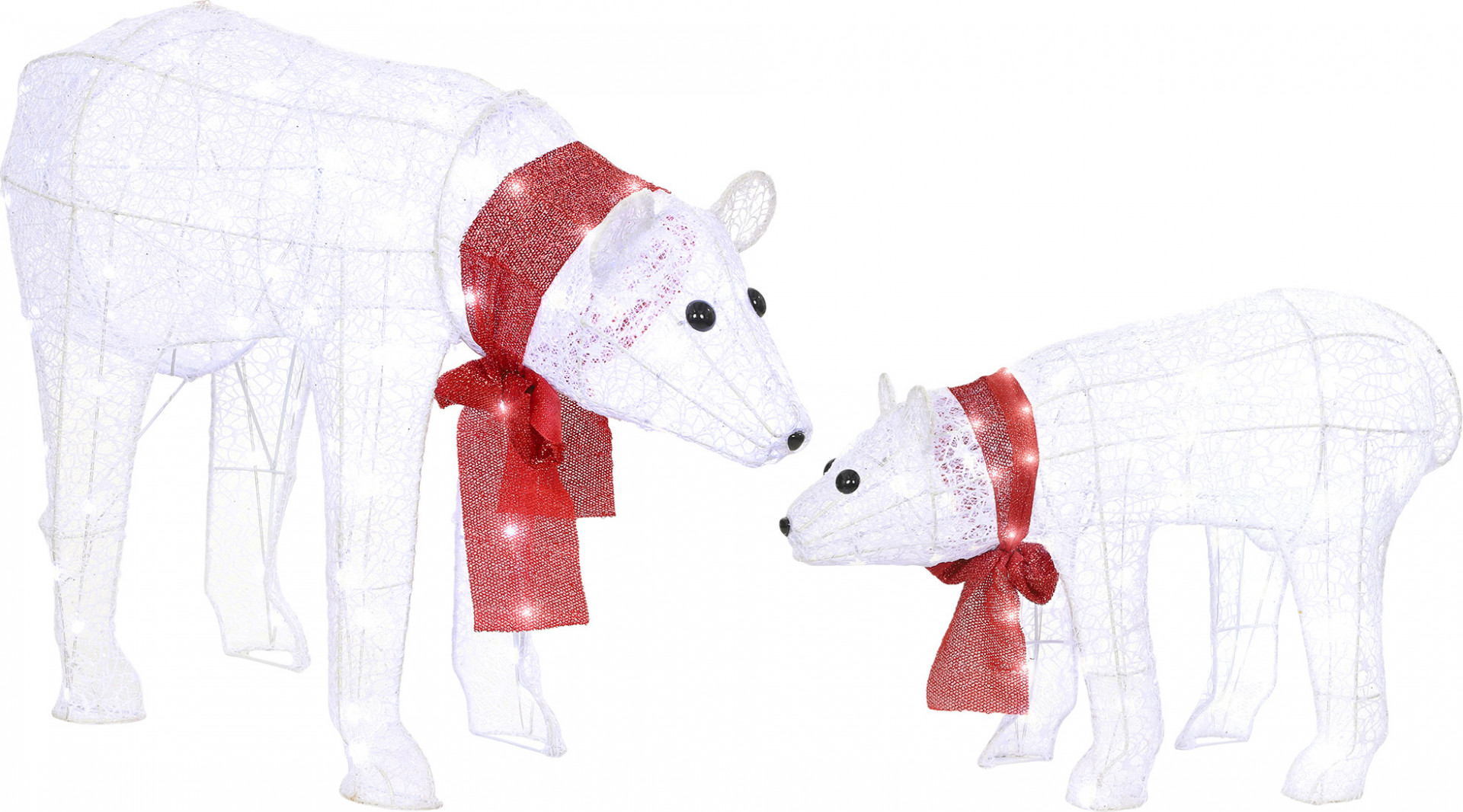 Tato vánoční dekorace s matkou a dítětem ledního medvěda vytvoří během svátků roztomilou a útulnou atmosféru. Svítící vánoční osvětlení ledního medvěda se 140 LED diodami vytvoří okouzlující zimní atmosféru. Tento okouzlující medvědí pár s voděodolností IP44 se skvěle hodí na zahradu nebo do obývacího pokoje, aby kdekoli šířil sváteční kouzlo.