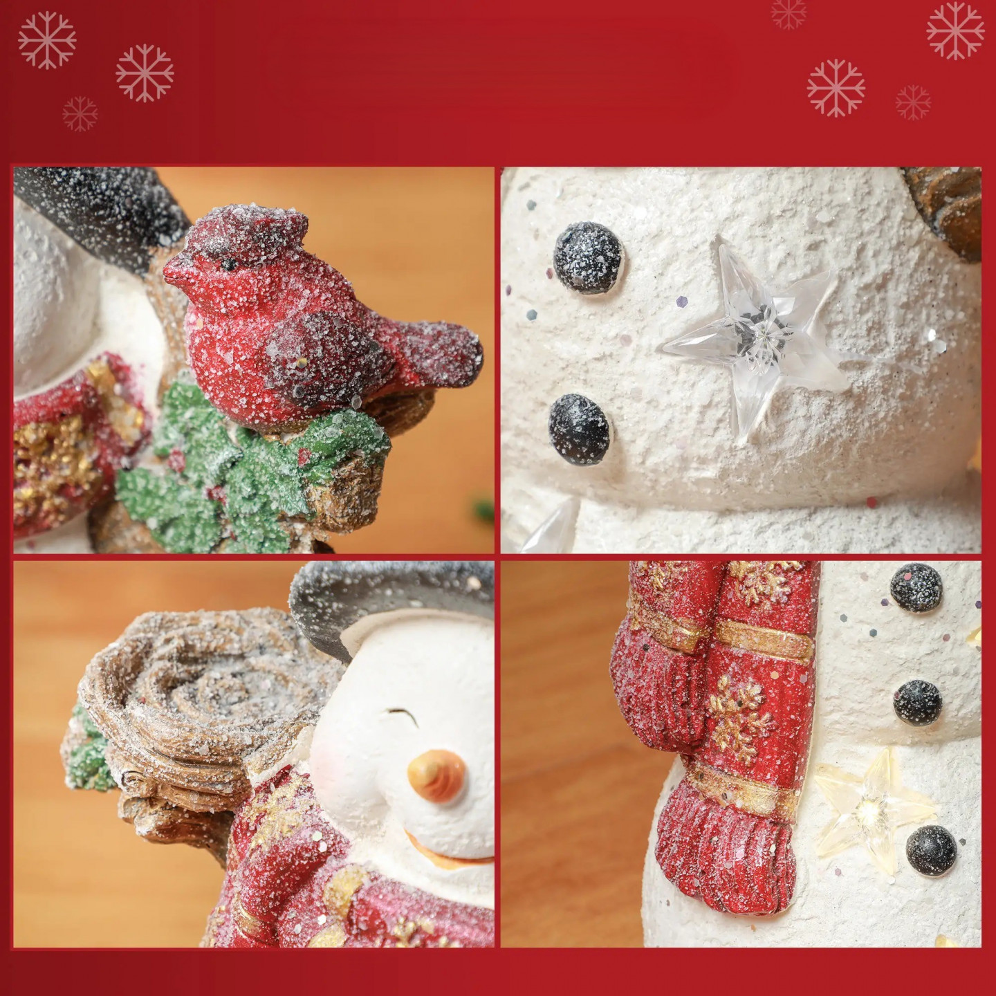 Zažijte kouzlo vánoční dekorace sněhuláka, okouzlující 38 cm vysoké postavičky, která si na rameni spokojeně nese ptáčka. Tato speciální vánoční dekorace sněhuláka svítí 4 teplými bílými LED diodami a vykouzlí útulnou atmosféru. Vánoční dekorace se snadno umisťuje díky provozu na baterie a je ideální pro dodání svátečního nádechu zahradě, vchodu nebo nočnímu stolku.