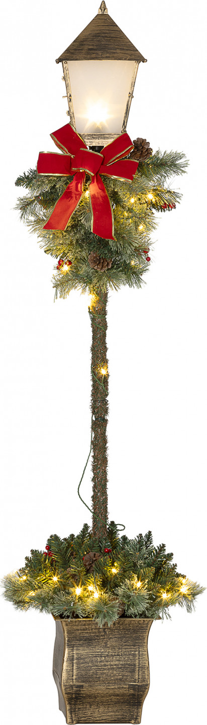 Ponořte se do svátečního období s vánoční lucernou! Zdobí ji dva druhy jedlových větviček, šišky a červené bobule jmelí a na vrcholu je ozdobená slavnostní mašlí. Součástí jsou světýlka, která rozzáří každý kout - snadno se nastavuje, a to jak uvnitř, tak venku. Nehořlavé materiály vánoční lucerny zajišťují mimořádnou bezpečnost. Dodejte svému domovu kouzelnou záři a vytvořte si nezapomenutelné okamžiky.