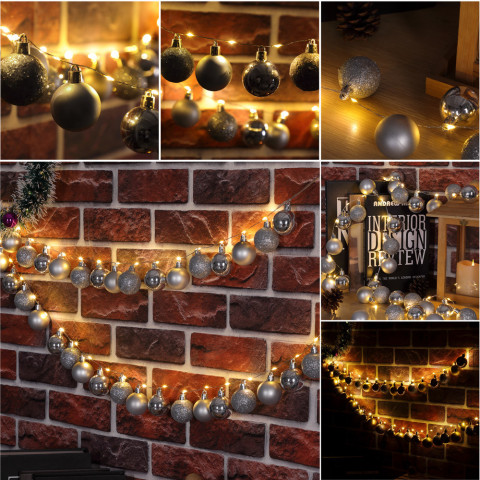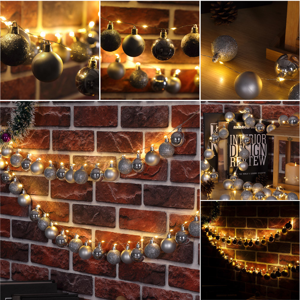 Vánoční LED řetěz koule stříbrné 2 m | teplá bílá 40 LED