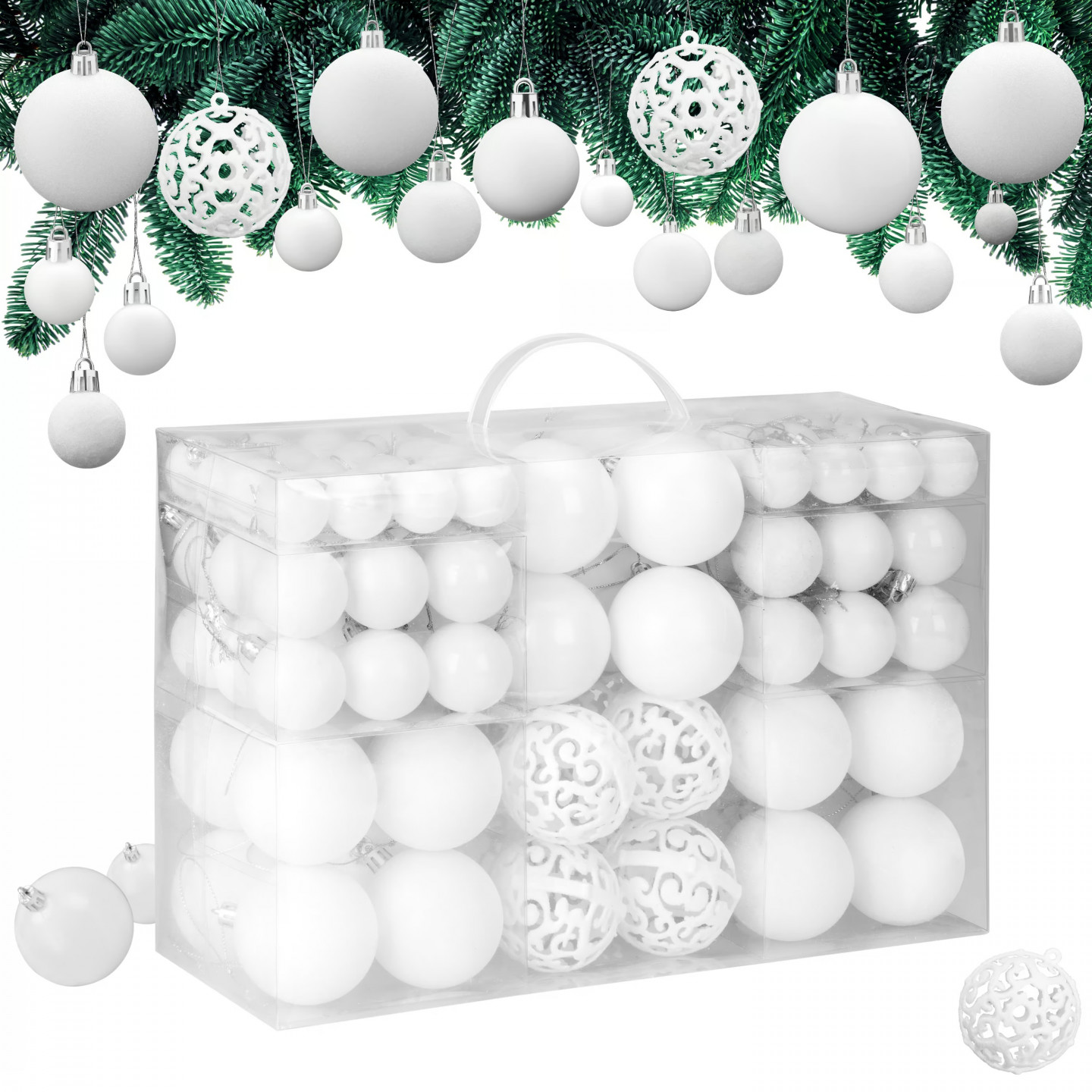 Připravte svůj vánoční stromek na sváteční kouzlo s touto sadou 100 bílých ozdob v různých provedeních – matném, lesklém i třpytivém. Kombinace povrchů vytváří elegantní a harmonický vzhled, který rozjasní každý interiér.