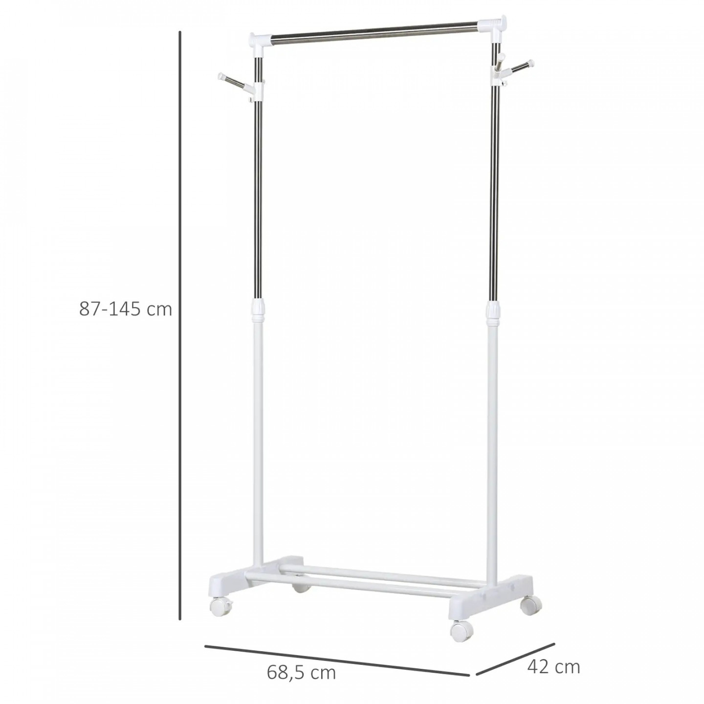 - 4 bílá PP kolečka na věšáku výrazně usnadňují jeho přesun z jedné místnosti do druhé. Dvě z těchto koleček jsou vybavena brzdou, která jej zablokuje, když jej nechcete přemístit
