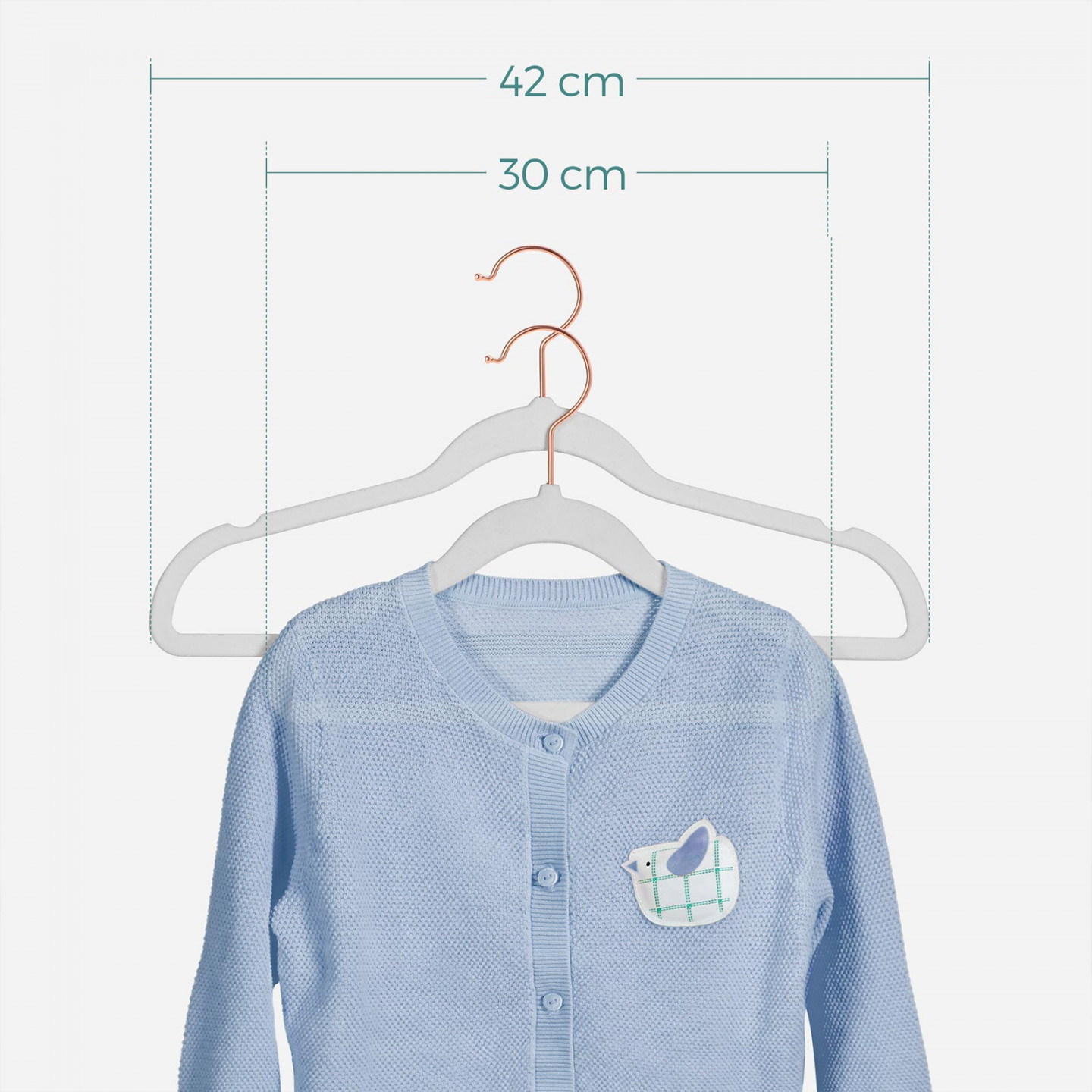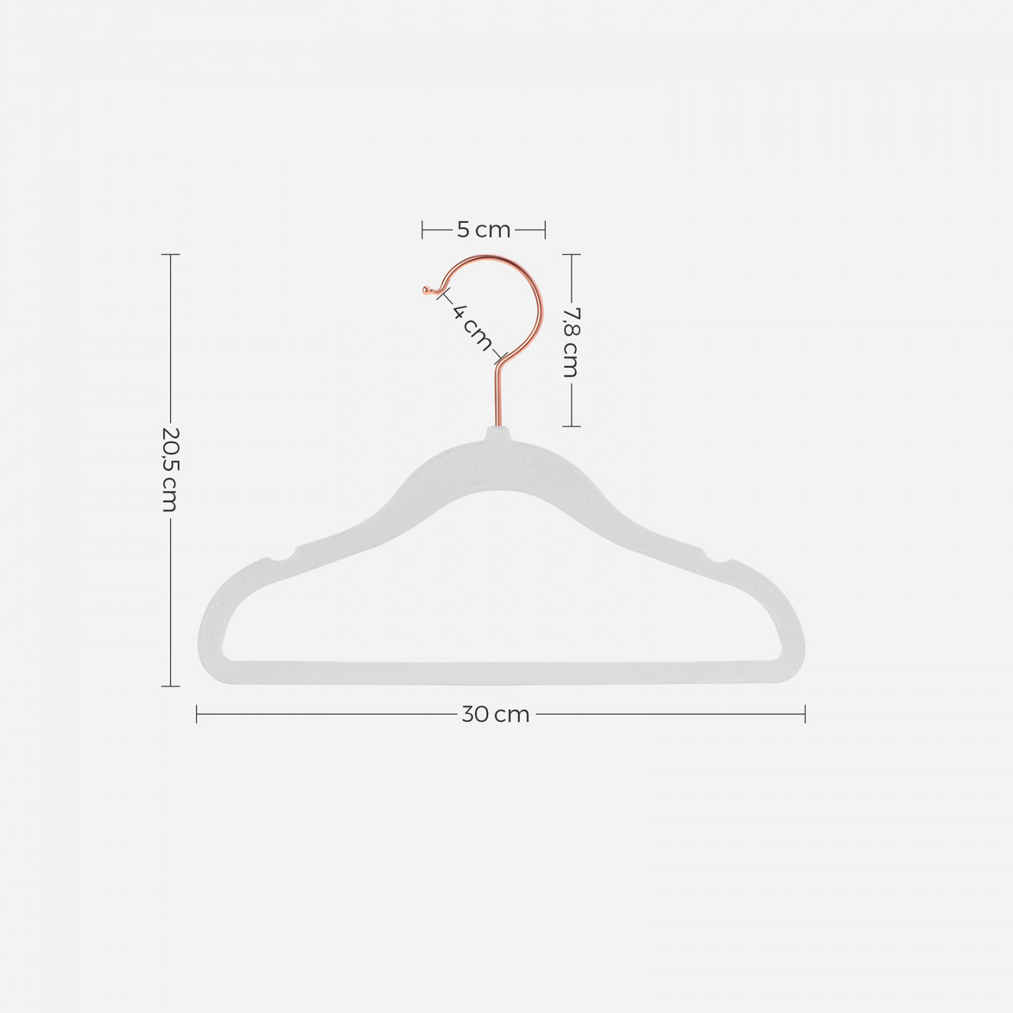 - Velikost každého věšáku: 30 x 0,5 x 20,5 cm (D x Š x V)