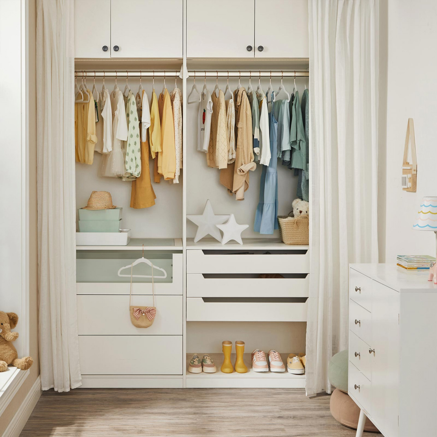 Sametová dětská ramínka v balení 50 kusů v elegantní bílé barvě jsou praktickým a stylovým řešením pro ukládání a organizaci dětského oblečení v šatníku. Díky svému designu a kvalitnímu provedení pomáhají šetřit místo, zabraňují klouzání oblečení a přispívají k přehlednému uspořádání dětského šatníku.