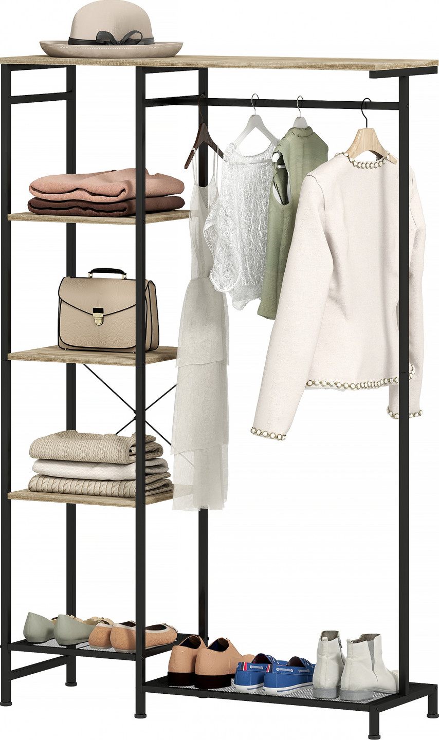 - Kovový rám volně stojícího věšáku s práškovou povrchovou úpravou pro větší stabilitu