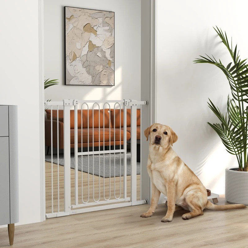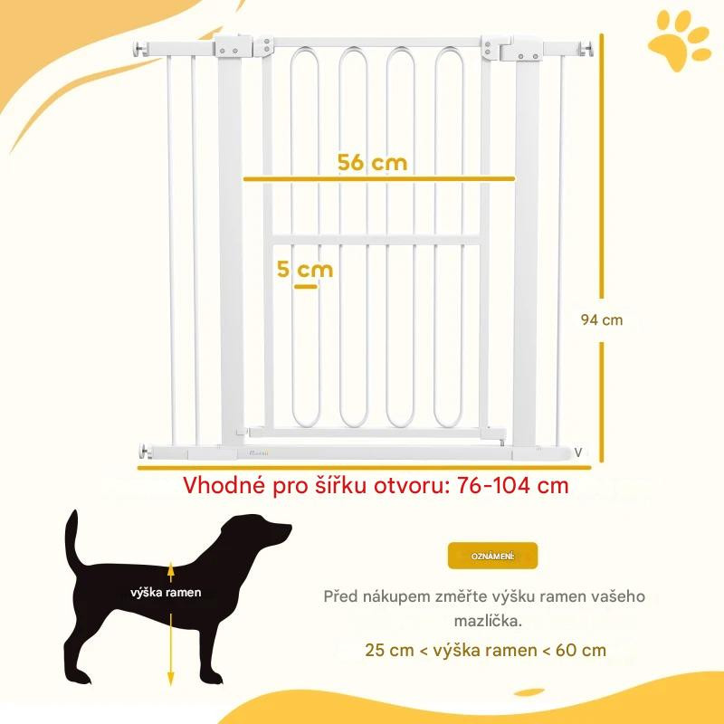 Udržujte svého čtyřnohého přítele v bezpečí a optimalizujte svůj domov pomocí dveřní brány bez vrtání. Tato branka je nastavitelná od 76 do 104 cm a je ideální pro schody, chodby a dveře. Dvojité zamykání schodišťové branky umožňuje snadné otevírání jednou rukou a zajišťuje bezpečnost, protože branka se otáčí na obě strany. Je vhodná pro malé i velké psy a dokonale ladí s vaším nábytkem.