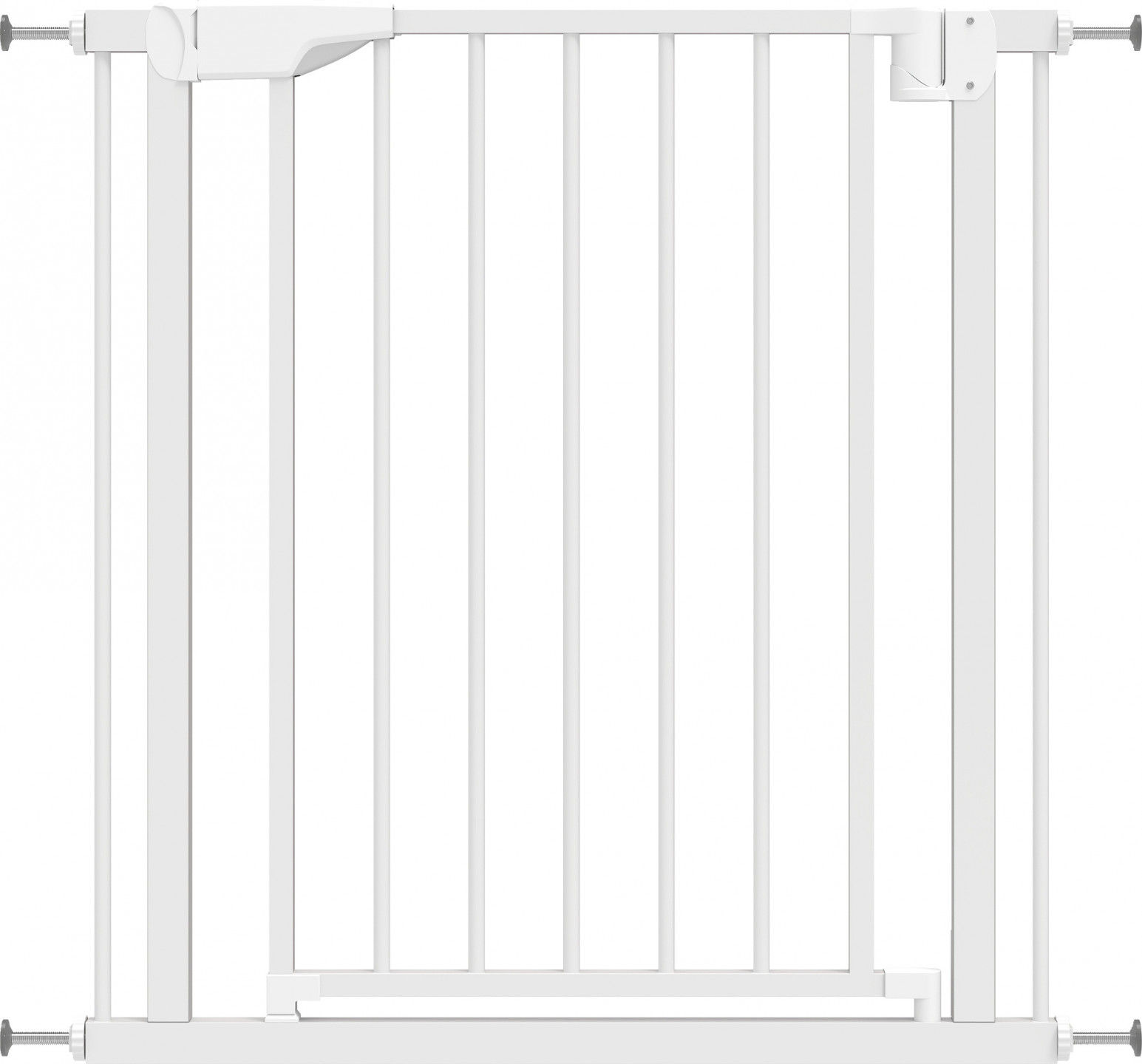 Chraňte batolata a malá domácí zvířata při vaření v kuchyni, hraní v obývacím pokoji nebo při chůzi po schodech. Tato bezpečnostní branka do dveří se hodí do otvorů širokých 76-82 cm a je vysoká 76 cm. Je vyrobena z certifikované oceli a má dvě západky. Bránu lze otevírat oběma směry a automaticky se zavírá. Používá zásuvné spojení nebo šroubové upevnění, díky čemuž je instalace flexibilní a pohodlná, aniž by došlo k poškození domu.