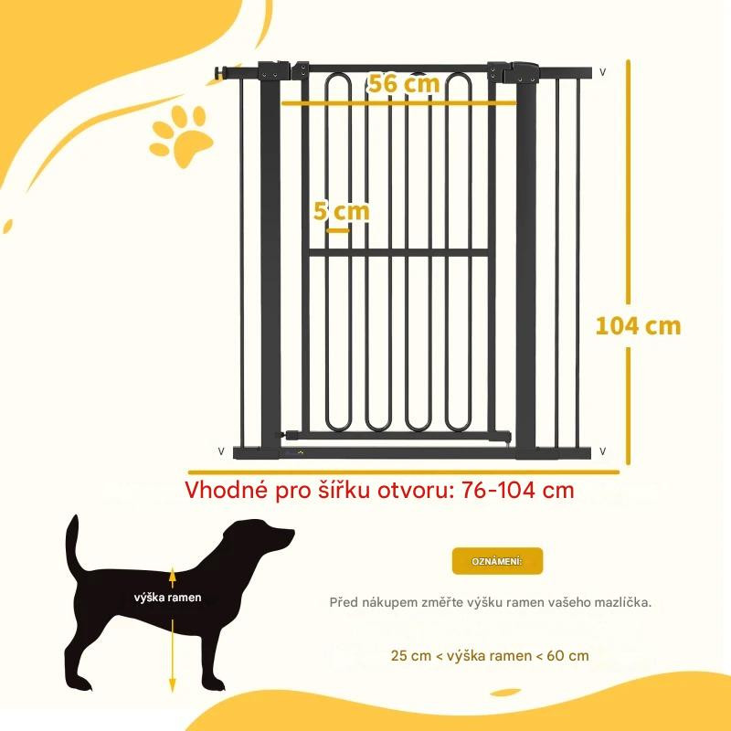Udržujte svého čtyřnohého přítele v bezpečí a optimalizujte svůj domov pomocí dveřní brány bez vrtání. Tato branka je nastavitelná od 76 do 104 cm a je ideální pro schody, chodby a dveře. Dvojité zamykání schodišťové branky umožňuje snadné otevírání jednou rukou a zajišťuje bezpečnost, protože branka se otáčí na obě strany. Je vhodná pro malé i velké psy a dokonale ladí s vaším nábytkem.