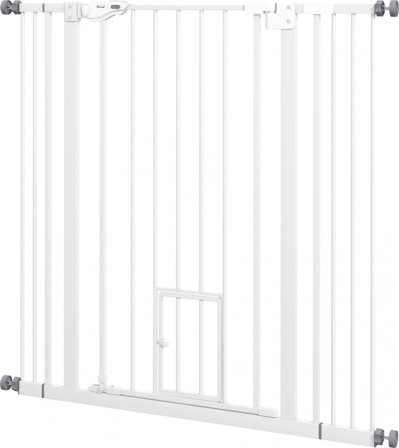 Pomocí této bezpečnostní brány snadno udržíte své domácí mazlíčky mimo určité oblasti. Je vyrobena z pevné oceli pro větší pevnost a odolnost. Součástí jsou 4 nastavovací šrouby, které se pohybují v rozmezí šířky od 74 cm do 80 cm, což umožňuje snadné přizpůsobení různým velikostem místností.