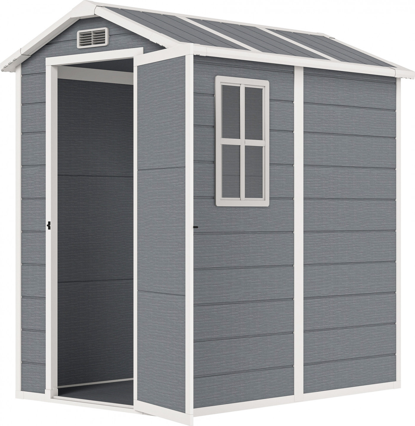 Vyzkoušejte stylový zahradní domek, který je ideální pro vaše potřeby venkovního skladování. Tento vodotěsný přístřešek na kola odolný proti UV záření, vyrobený z 12mm polypropylenové pryskyřice a vyztužený hliníkem, má podlahu odolnou proti dešti a průhledné okno, které poskytuje světlo. V tomto zahradním přístřešku můžete bezpečně a chráněni před povětrnostními vlivy skladovat své zahradní nářadí, nástroje a další potřeby.