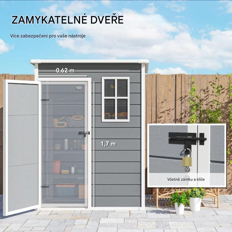 Zvyšte hodnotu své zahrady a vytvořte si prostor pomocí kůlny na nářadí. Chraňte cenné vybavení pod jeho vodotěsnou střechou. Díky oknu ve stylu domku můžete rychle najít věci a vidět dovnitř zvenčí. Uzamykatelné dveře zahradního domku chrání vaše nářadí před krádeží a zneužitím. Vysoký zahradní domek na nářadí nabízí dostatek prostoru pro lopaty, semena, zeminu a hrábě. Buďte aktivní, buďte produktivní.