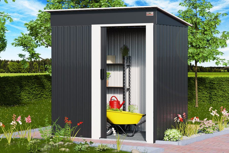 Zahradní domek je ideální pro uskladnění zahradního nářadí, jízdních kol, příslušenství k bazénu a dalších věcí, které se vám nevejdou do úložného prostoru v domě. Zahradní domek na nářadí v moderním designu má praktické posuvné dveře pro snadný přístup. Ocelová konstrukce činí domek odolným vůči korozi a extrémnímu počasí.