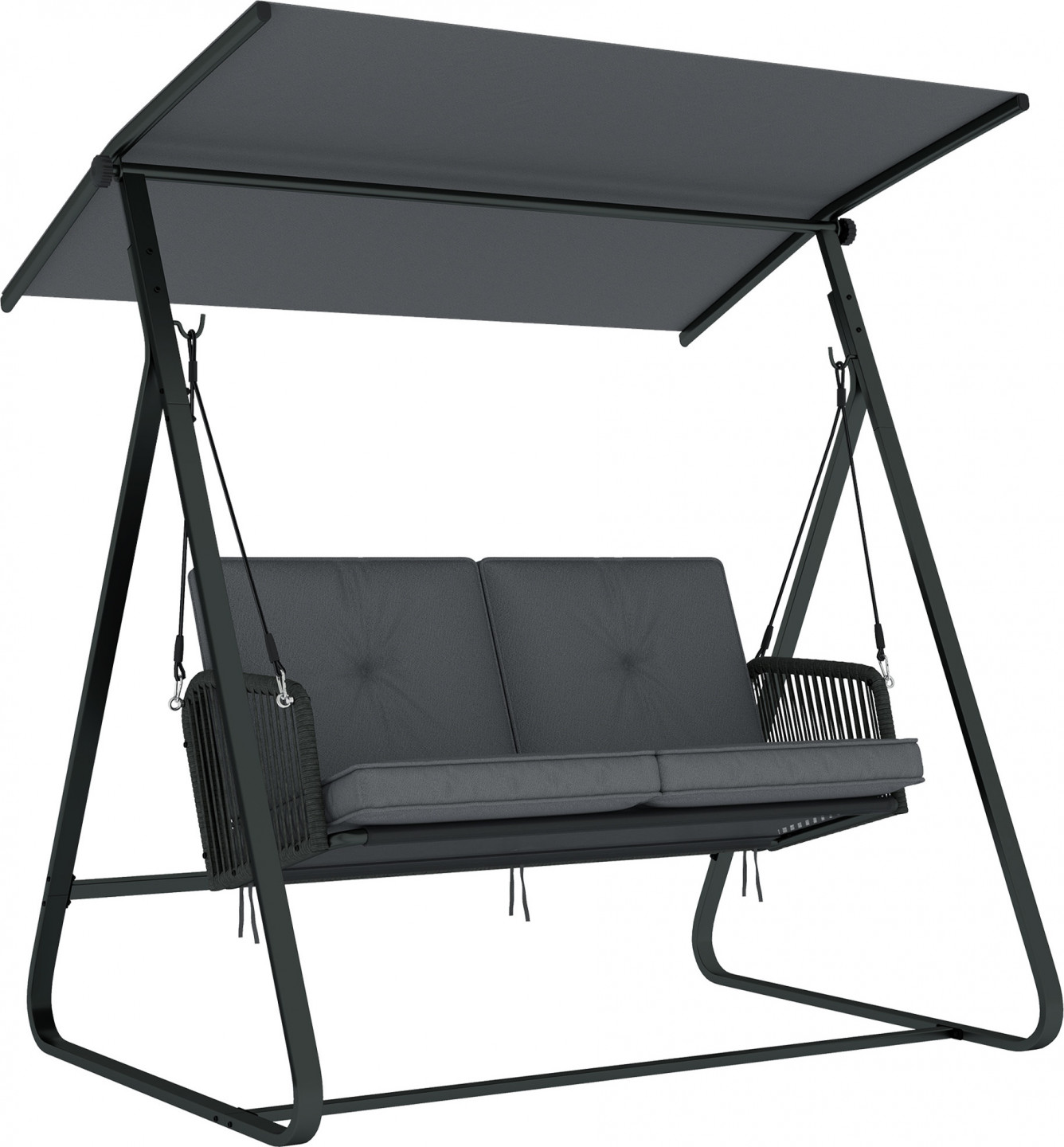 - Dvojitá lana a čtyři bezpečnostní přezky zajišťují stabilitu houpačky na terase