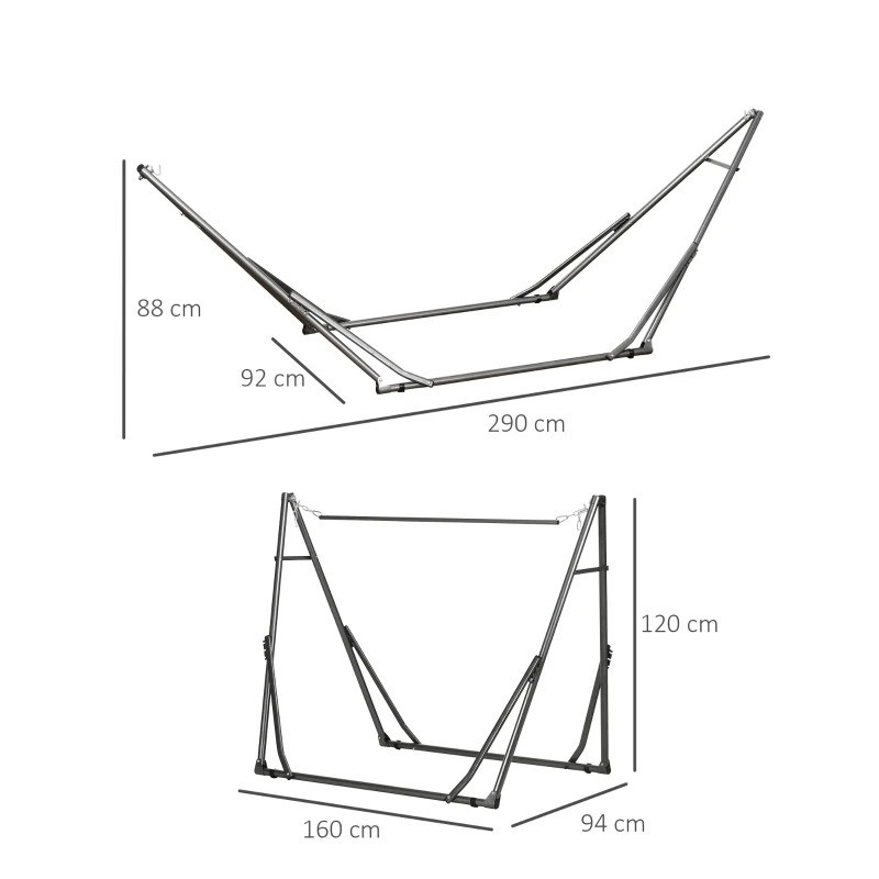 Stojan na houpací síť, 290 x 92 x 88 cm | černý + stříbrný