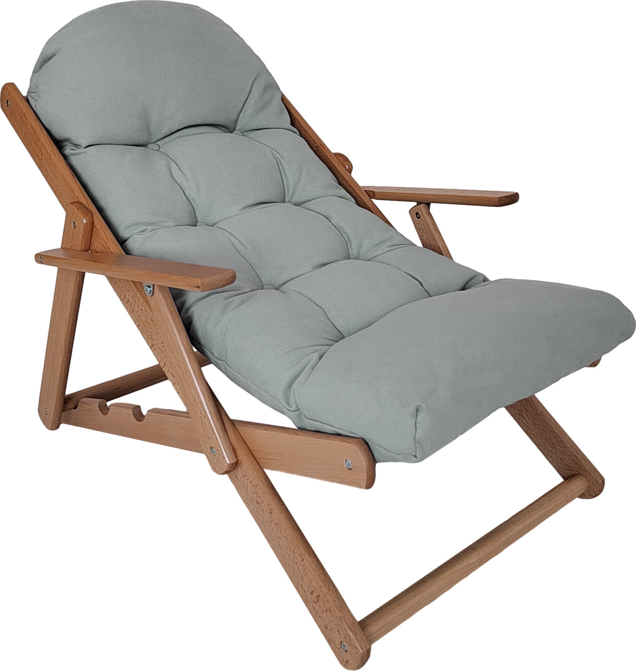 Naklápěcí dřevěné křeslo se silným polstrovaným polštářem, 71 x 89 x 96 cm | šedé