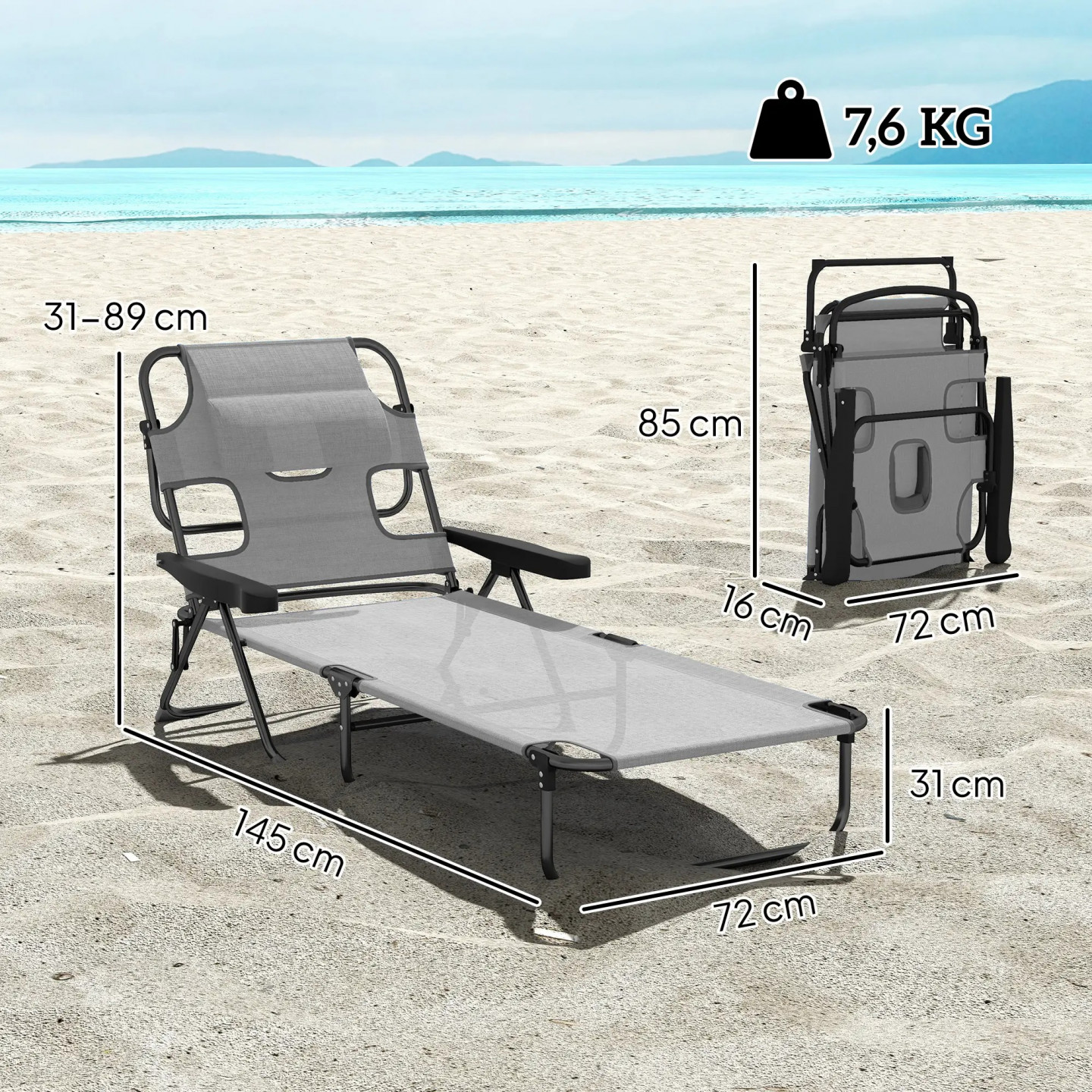Zahradní lehátko s nastavitelným opěradlem, 72x194x31 cm | tmavě šedé