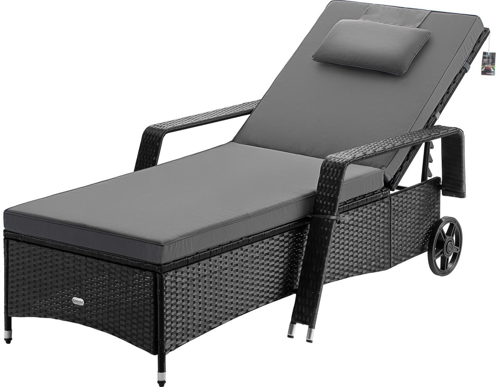 Proměňte svou zahradu v oázu wellness s pohodlným lehátkem. Slunečné a relaxační chvíle na zahradě, terase nebo balkonu jsou ještě lepší s extra silným 7cm polštářem, na kterém si můžete odpočinout.Polštáře jsou vodoodpudivé a odolné vůči UV záření . Lehátko unese až 160 kg . Díky hladce se pohybujícím kolečkům můžete zahradní lehátko snadno přepravovat. To vám umožní pohybovat s ním podle slunce. Opěrka hlavy je nastavitelná v pěti polohách , což vám umožní snadno nastavit opěradlo do ideální polohy vleže nebo v sedu, například při čtení. Opěrka hlavy zajišťuje pohodlnou polohu krku. Ručně tkaný polyratan a robustní ocelový rám s práškovým nástřikem jsou navrženy pro bezpečnost a zároveň dodají vaší zahradě stylový nádech.