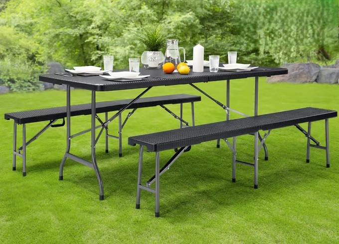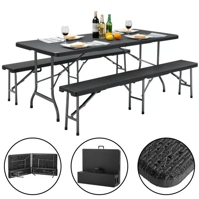 Praktická sedací souprava v ratanovém vzhledu z odolného HDPE plastu je ideální pro venkovní i vnitřní použití. Díky skládací konstrukci se snadno sestavuje, přenáší i skladuje. Stabilní kovový rám s práškovou úpravou zajišťuje dlouhou životnost a odolnost vůči počasí. Souprava nabízí pohodlné posezení až pro 8 osob, takže je skvělou volbou pro zahradní oslavy, grilování nebo kempování.