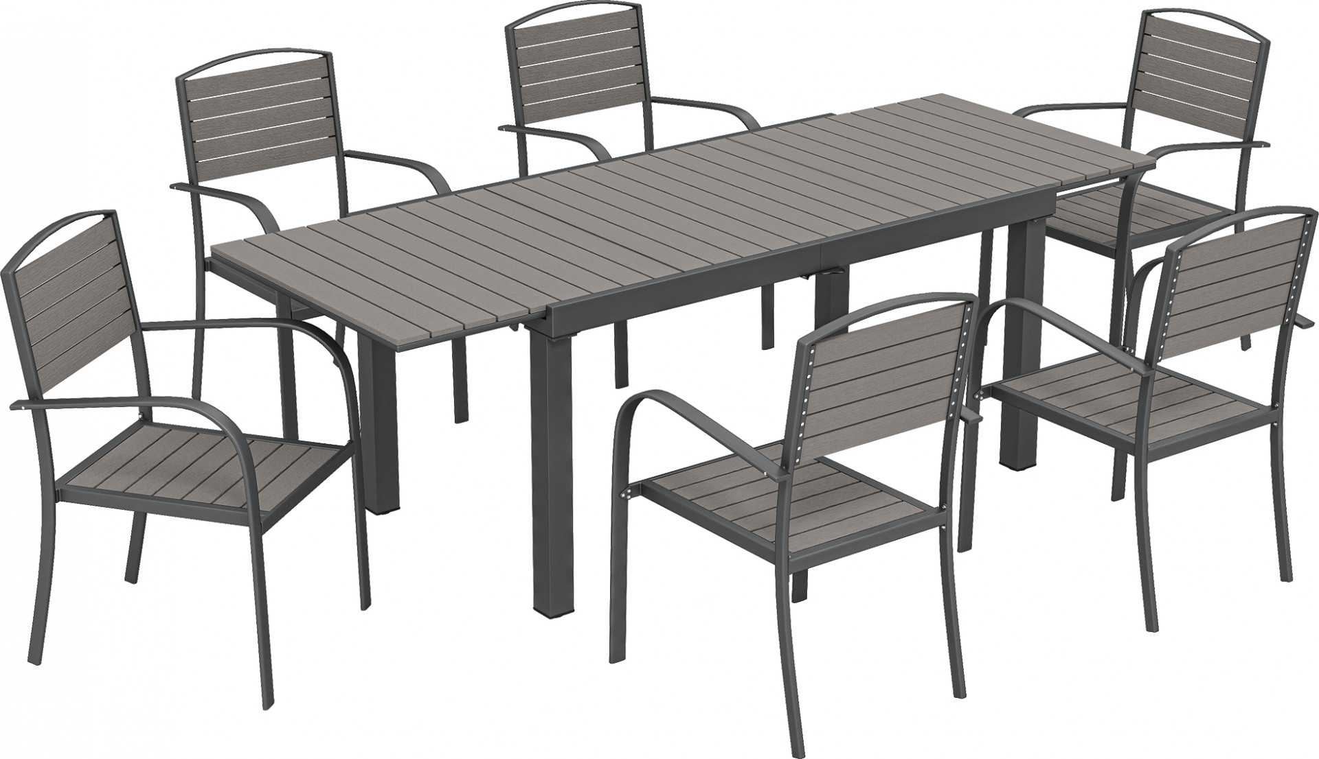 7dílný zahradní nábytek s rozkládacím stolem | šedý