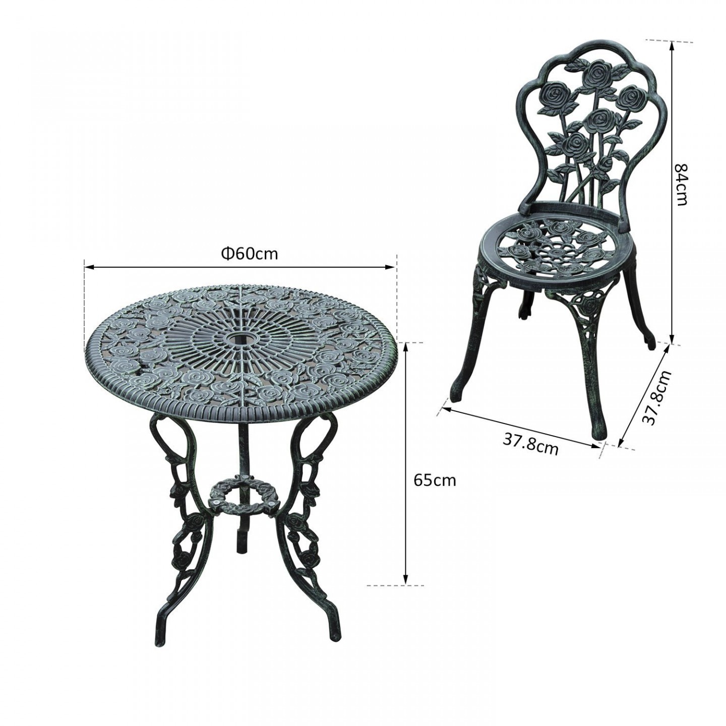 Kvalitní balkonový set je krásným doplňkem pro Vaši zahradu, terasu nebo balkon. Je vyroben z litého hliníku, a tak odolný proti povětrnostním vlivům. Uprostřed stolu je nenápadný otvor pro slunečníky.