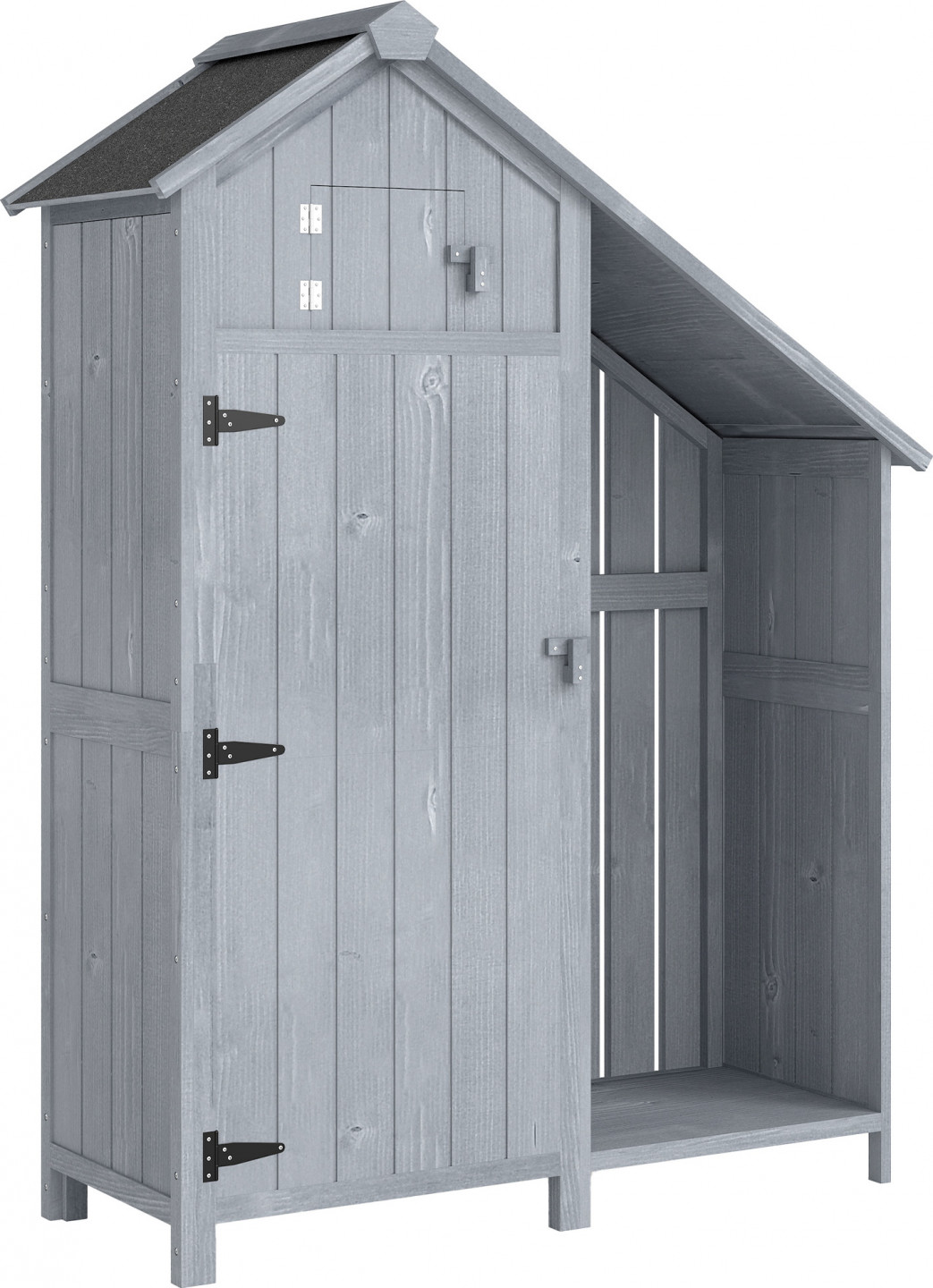 Pokud potřebujete výrobek pro uložení nářadí, je tato dřevěná zahradní skříň vaším ideálním partnerem. Tato dřevěná zahradní skříň se střechou z asfaltové lepenky zajistí, že vše uvnitř zůstane v suchu. Tři různě navržené police lze umístit samostatně podle velikosti nářadí, což vám ušetří spoustu času při organizaci. Snadná montáž.