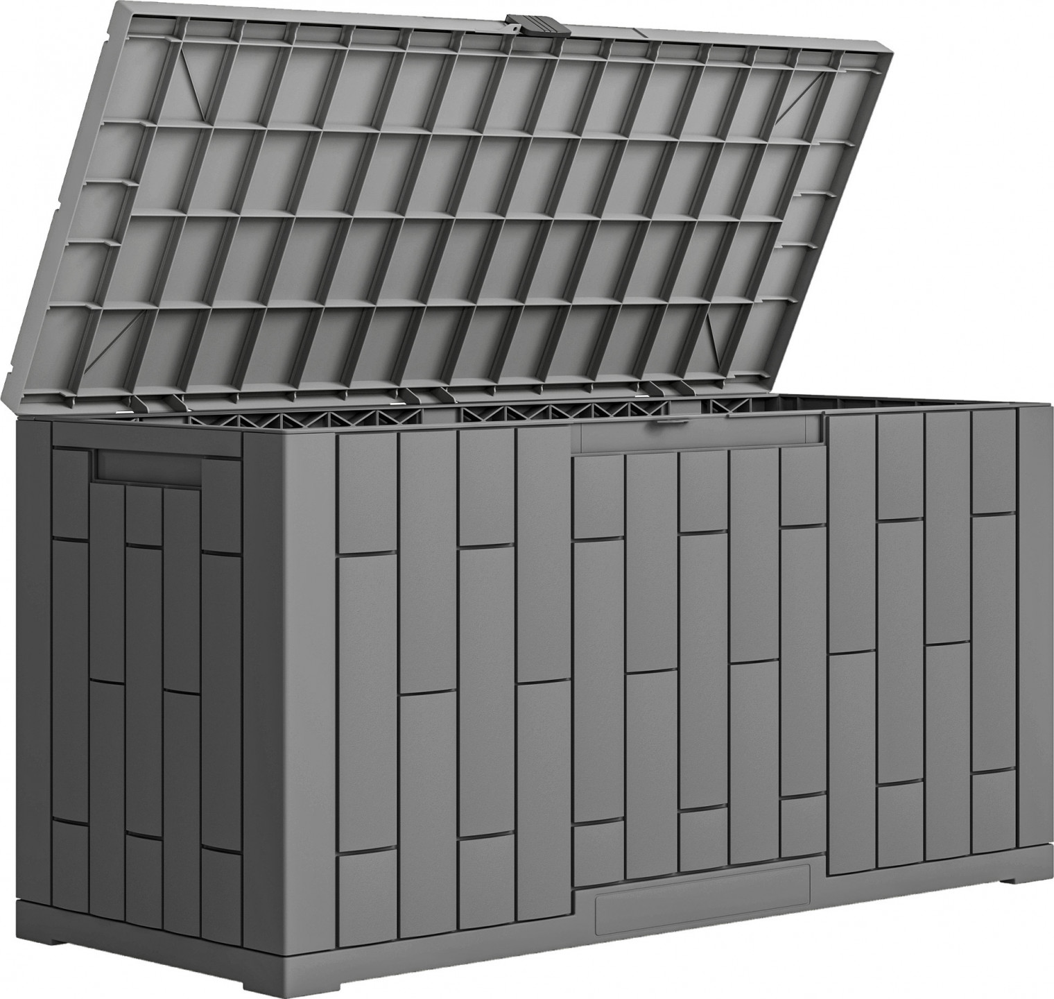 • Zabudované boční úchyty usnadňují přemisťování tohoto vodotěsného zahradního boxu