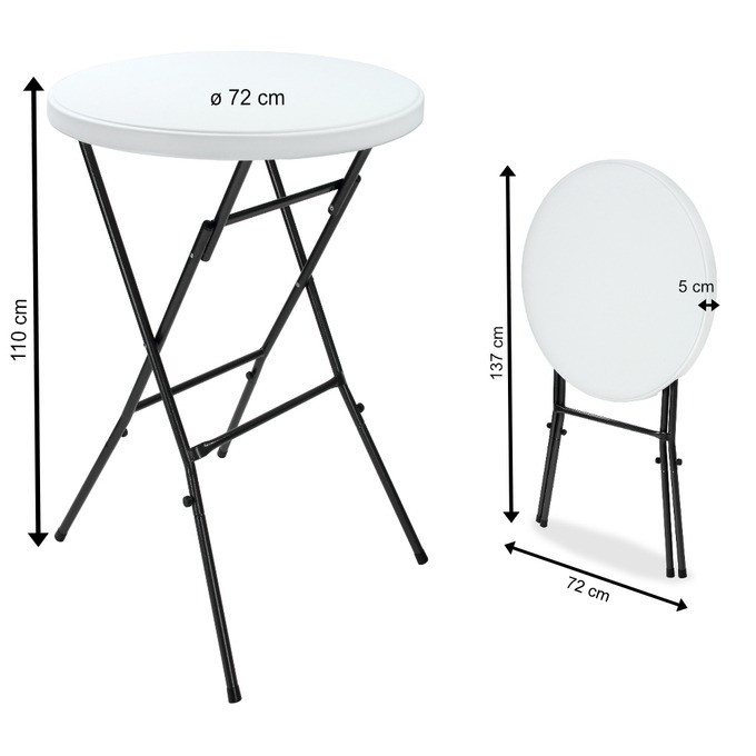 Barový stůl s plastovou deskou, která se snadno udržuje, a robustním kovovým rámem je ideální pro zahradní párty, narozeninové oslavy, svatby nebo jiné akce atd. Velká, extra silná deska stolu vás vybízí k útulným setkáním a slouží jako praktický úložný prostor.
