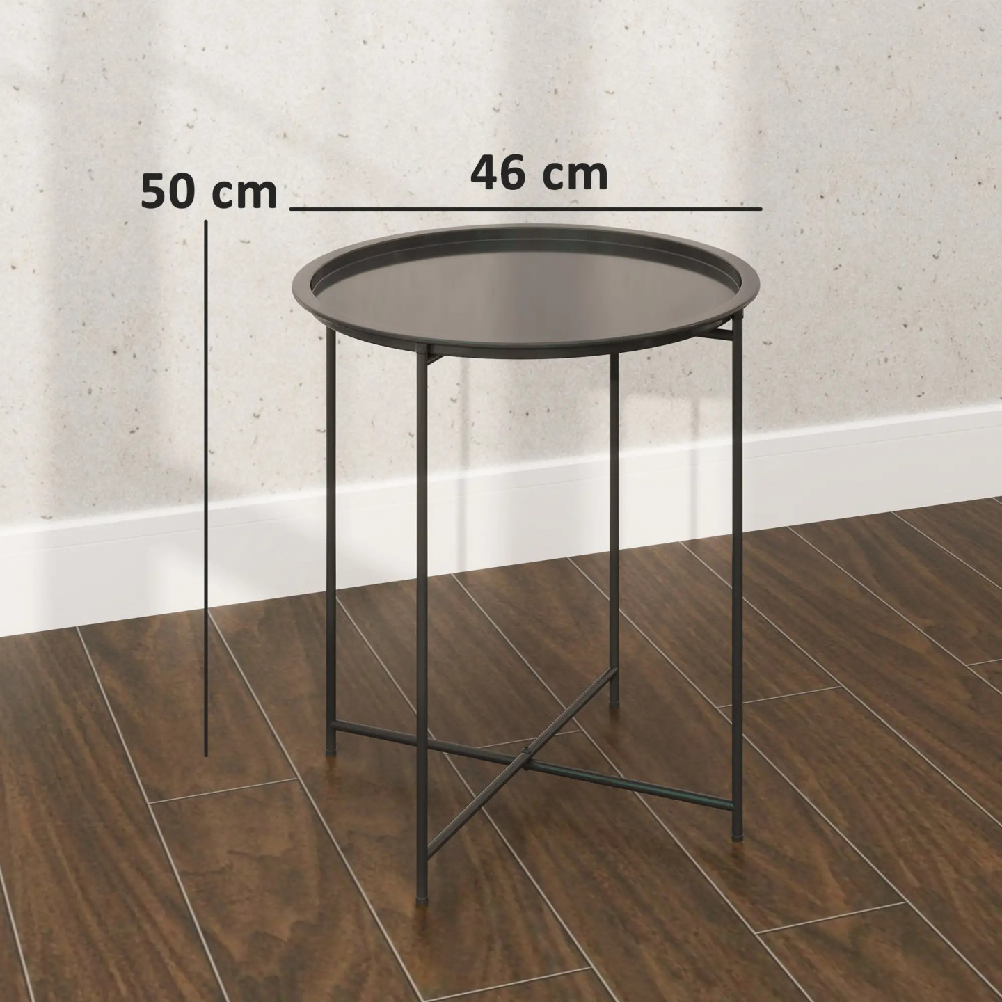 Tento skládací venkovní stolek je vybaven odnímatelným podnosem a skládacími nohami pro snadné skladování. Zvýšený okraj podnosu chrání vaše předměty. Kulatý zahradní stolek je vyroben z robustní oceli a nabízí také dlouhou životnost. Nastavitelné podložky pod nohy zajišťují stabilitu i na nerovném terénu.