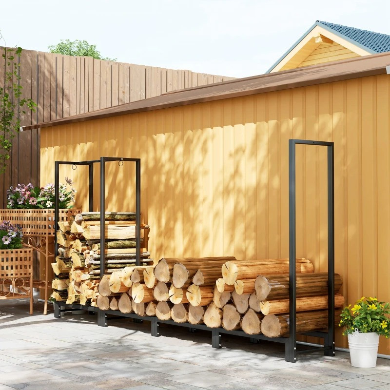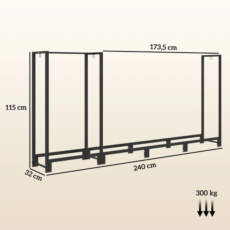 Stojan na palivové dřevo, 240 x 32 x 115 cm | černý