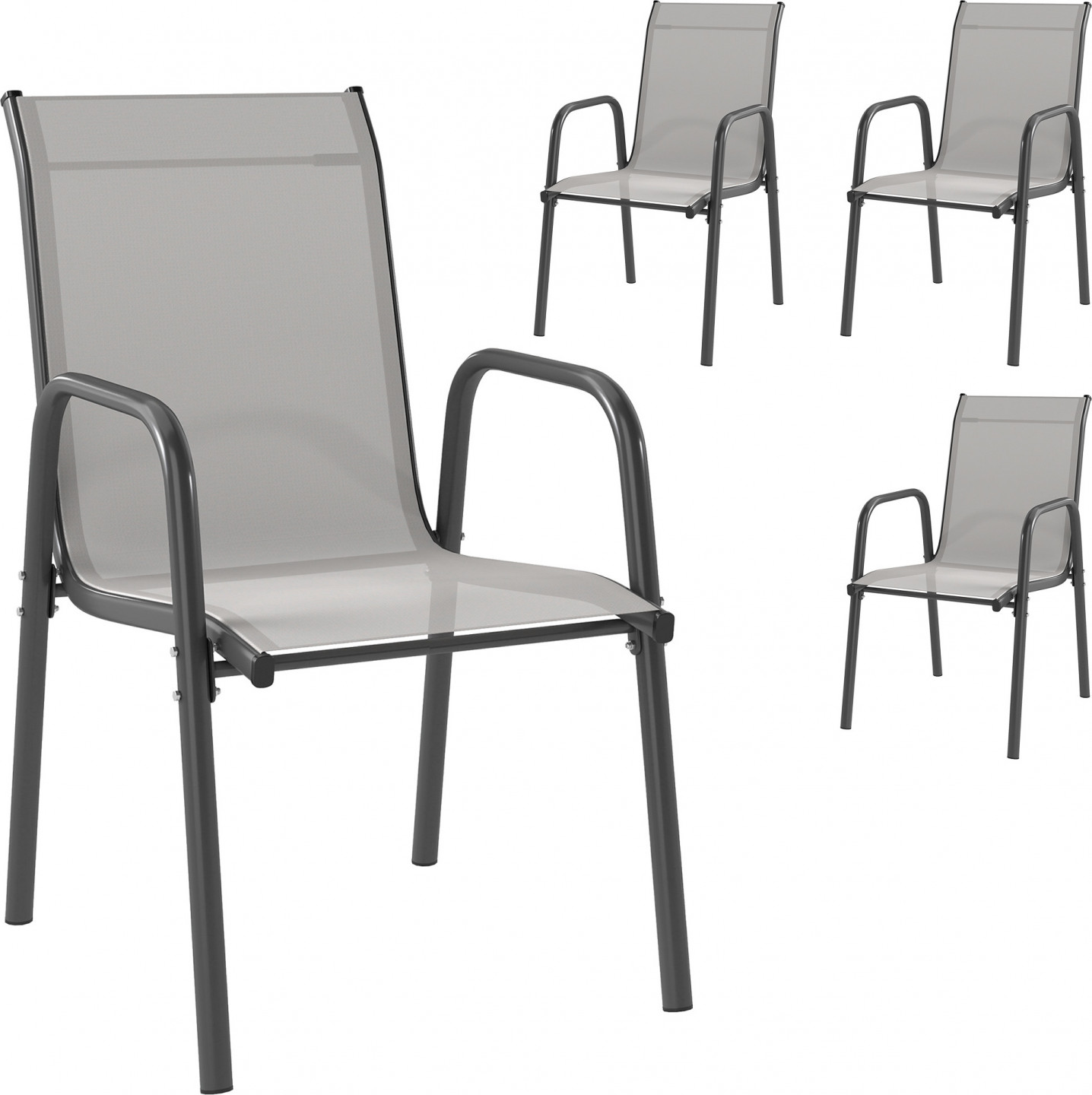 Sada 4 stohovatelných židlí na terasu s prodyšným opěradlem | světle šedé