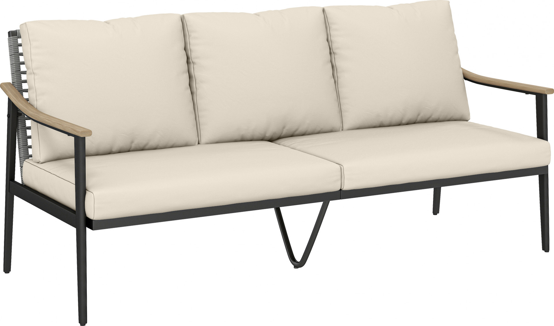 • Unikátní ocelové područky se vzhledem dřeva dodávají této zahradní pohovce přírodní vzhled