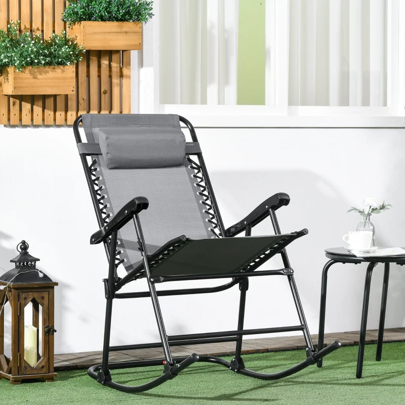 Zažijte čistou relaxaci s naším chytrým houpacím křeslem pro nezapomenutelné chvíle pod širým nebem. Vychutnejte si jemné houpání, zatímco se ponoříte do dobré knihy nebo si prostě jen vychutnáte okamžik. Sedák a opěradlo jsou potaženy prodyšným potahem Texteline odolným proti povětrnostním vlivům, zatímco polštářek pod hlavu poskytuje další pohodlí. Přestože je toto skládací křeslo mimořádně robustní, rám je působivě lehký - ideální na cesty, kempování a mnoho dalšího.